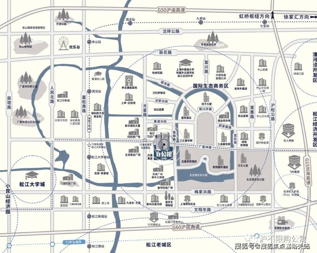 项目位于:广富林路,茸梅路交汇处是整个地铁9号线沿线离地铁站最近的楼盘,没有之一,出门即能享受地铁、地铁9号线大学城站一公里,有轨电车光星路站就门口,家门口8万方五龙湖生态公园,万达零距离。无与伦比的生活配套,